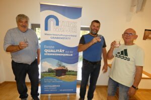 Im Rahmen des Grabenstätter Herbstmarktes konnte man am vergangenen Sonntag die Jubiläumsausstellung „100 Jahre WBV Grabenstätt“ besuchen. Nicht nur Wasserwart Helmut Steinbeck (von links), sondern auch Mitglieder der WBV-Vorstandschaft – wie hier auf dem Foto –Michael Lex und Paul Osenstetter standen den Besuchern mit ihrer Expertise Rede und Antwort.